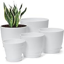 Amazon Com 7 Pack Mix Size Plastic Plant Pots 6 2 5 4 4 8 4 5 4 Inch Indoor Planters With Drainage Holes And Tray Thickened Plastic Flowers Pots For Plants Succulents Snake Plant And Cactus White Patio Lawn
